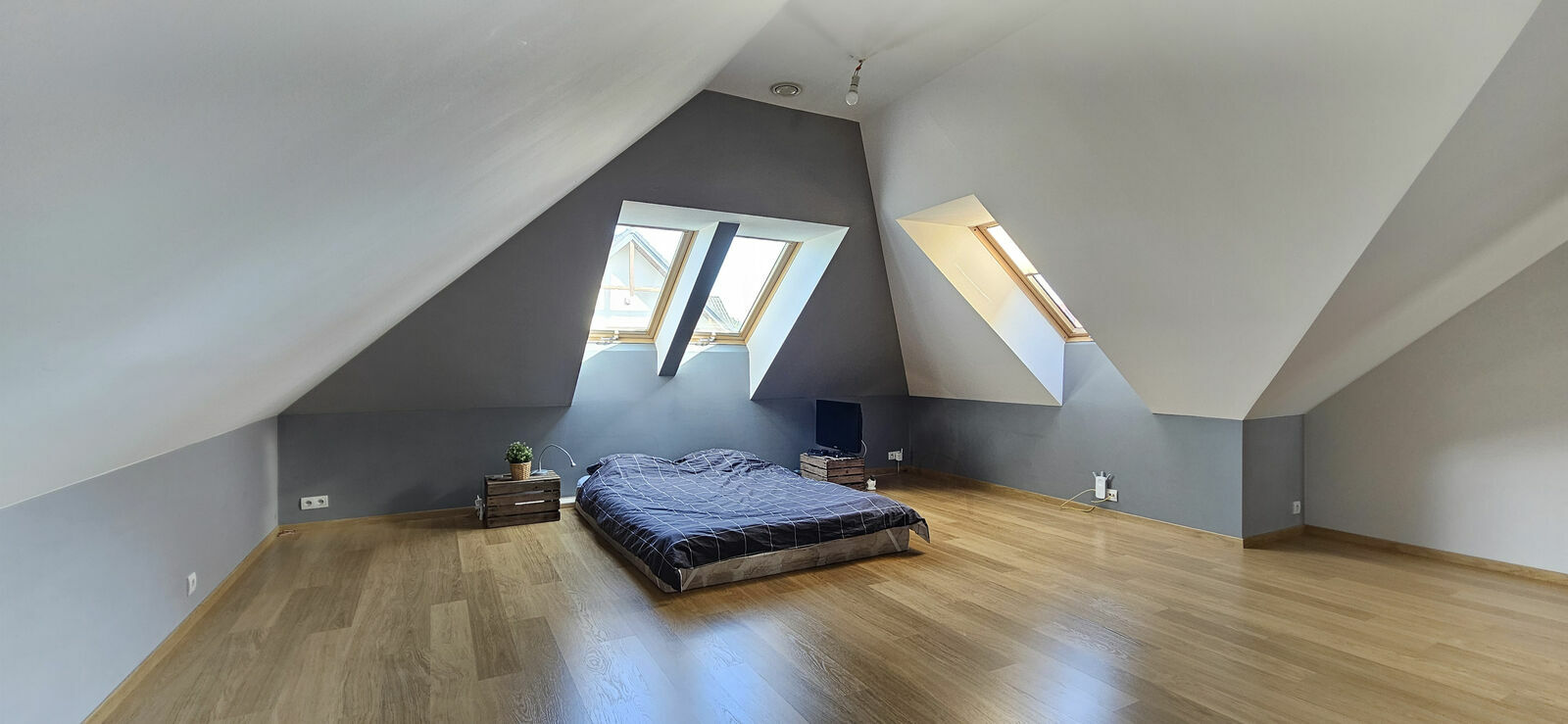 Wszystkie okna, okna połaciowe, drzwi balkonowe są 3 szybowe z opaskami termicznymi.