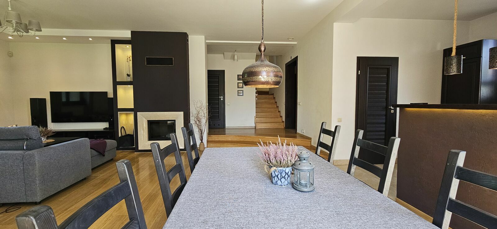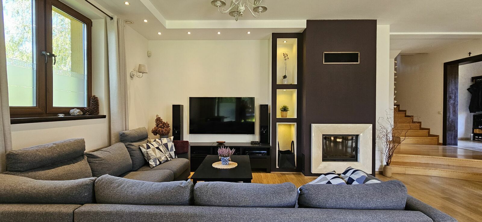 Jest także wentylacja mechaniczna rekuperator z odzyskiem ciepła, kominek i podgrzewanie podłogowe.