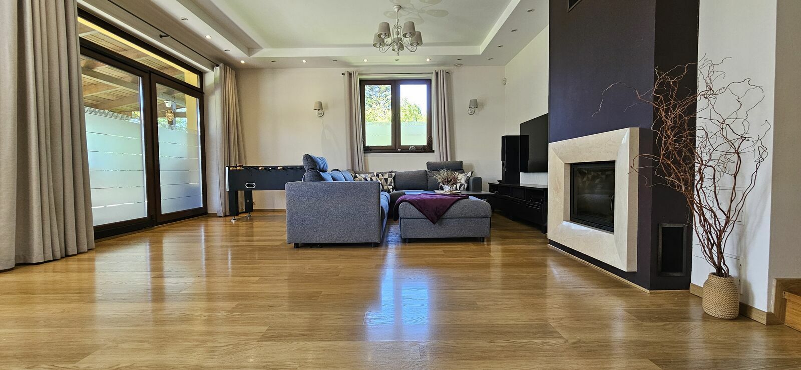 1. Salon z kominkiem (28,3 m2) i wyjściem na taras